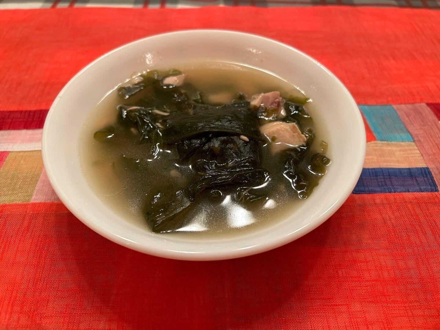 Ce mets est une soupe non-épicée coréenne composée principalement de miyeok (algues) qui est généralement consommée lors d’anniversaires pour honorer les mères et peu après un accouchement puisque le plat est riche en vitamine K qui est un facteur important dans la coagulation du sang.